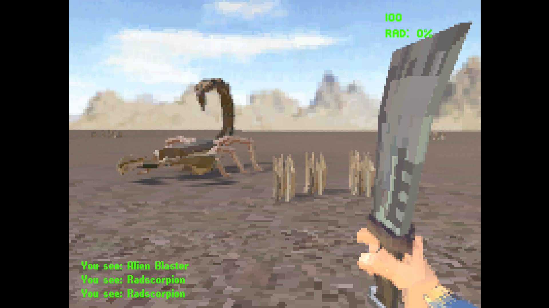 I tried to faithfully reproduce the concept of Fallout 1 as an FPS released on PlayStation 1 in 1997, obviously it is not complete and is still in its raw state, what you will be able to play is a prototype that I created in less than a week, I hope you enjoy it anyway and let me know what you think!